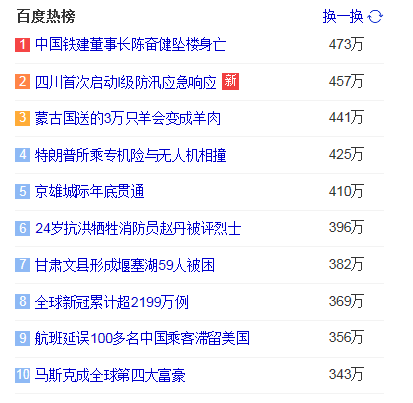 1.中国铁建董事长陈奋健坠楼身亡 猎头热点热度473万