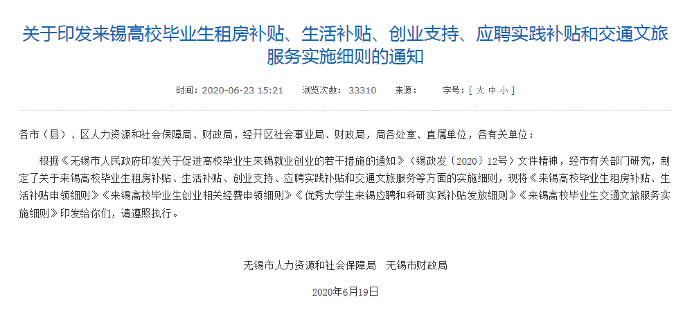 根据《无锡市人民政府印发关于促进高校毕业生来锡就业创业的若干措施的通知》(锡政发〔2020〕12号)文件精神,现就高校毕业生来锡工作租房补贴、生活补贴申领事项制定以下操作细则: