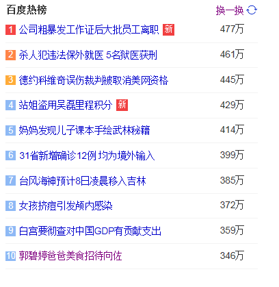 9.白宫要彻查对中国GDP有贡献支出 猎头热点热度359万