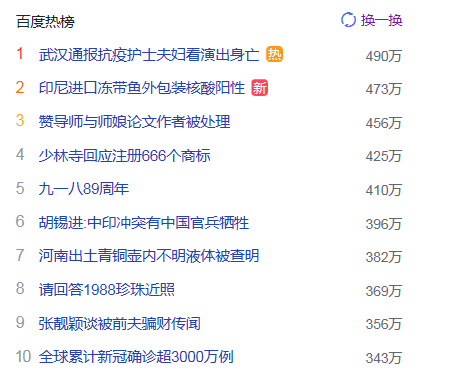 10.全球累计新冠确诊超3000万例 猎头热点热度343万