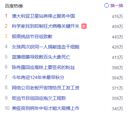 1.澳大利亚卫星站将停止服务中国 猎头热点热度476万