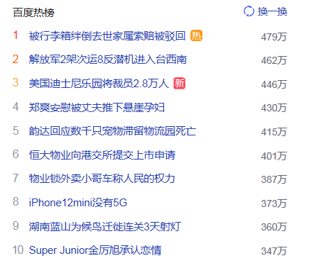 1. 被行李箱绊倒去世家属索赔被驳回 猎头热点热度479万