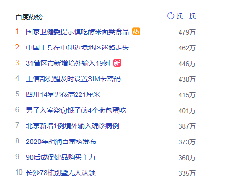 1.国家卫健委提示慎吃酵米面类食品 猎头热度热点479万