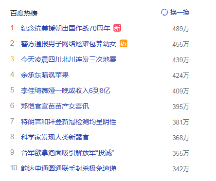 3. 今天凌晨四川北川连发三次地震 猎头热度热点439万
