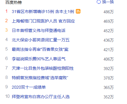 3. 日本首相菅义伟与拜登通电话 猎头热度热点452万