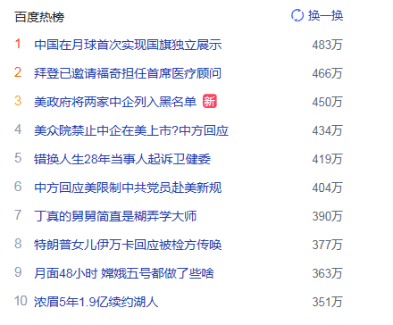 3. 美政府将两家中企列入黑名单 猎头热度热点450万