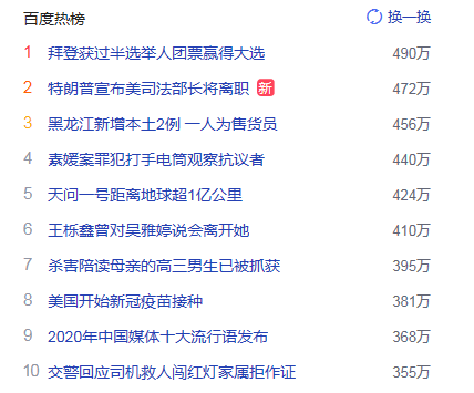 1. 拜登获过半选举人团票赢得大选 猎头热度热点490万